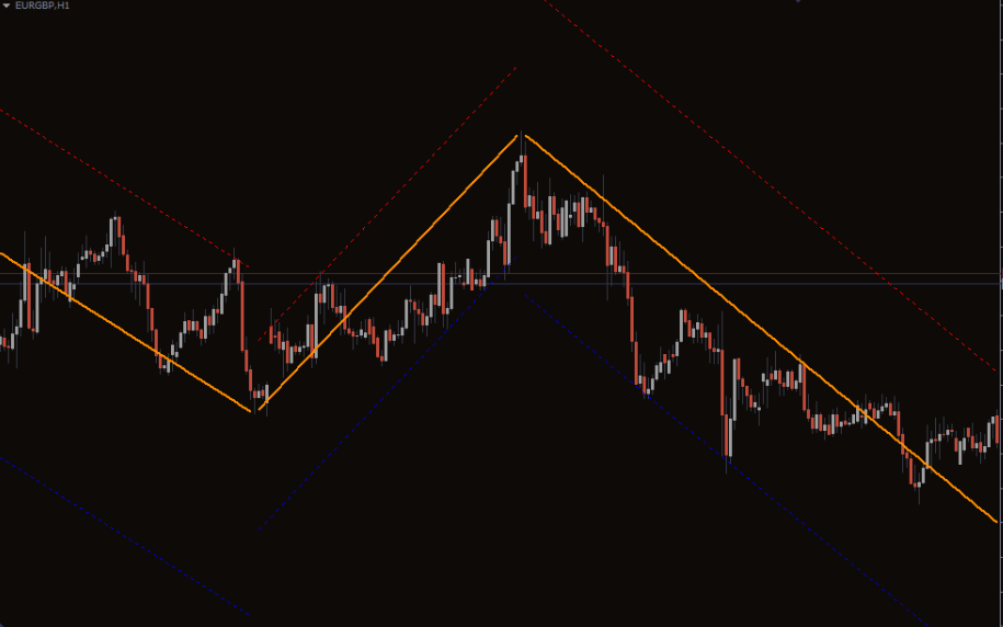 The Zig Zag Channels Indicator functions by mapping out market swings and then forming visual channels around each price leg. These channels represent volatility and slope—two critical aspects of price behavior.