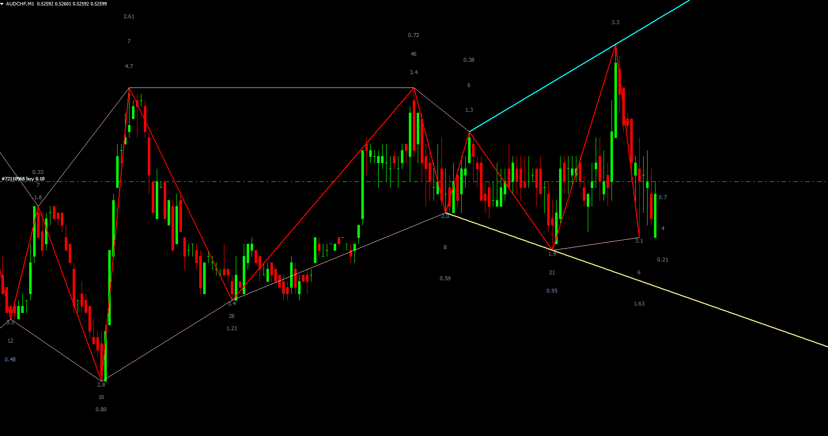 The red ZigZag line helps traders visualize potential reversal zones. Following standard technical analysis rules: