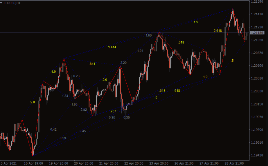 For example, the above EURUSD H1 chart shows how the ZUP indicator demonstrates patterns in real time. Forex traders can analyze these detected structures to identify valid entries, potential reversal zones, and price projection targets.