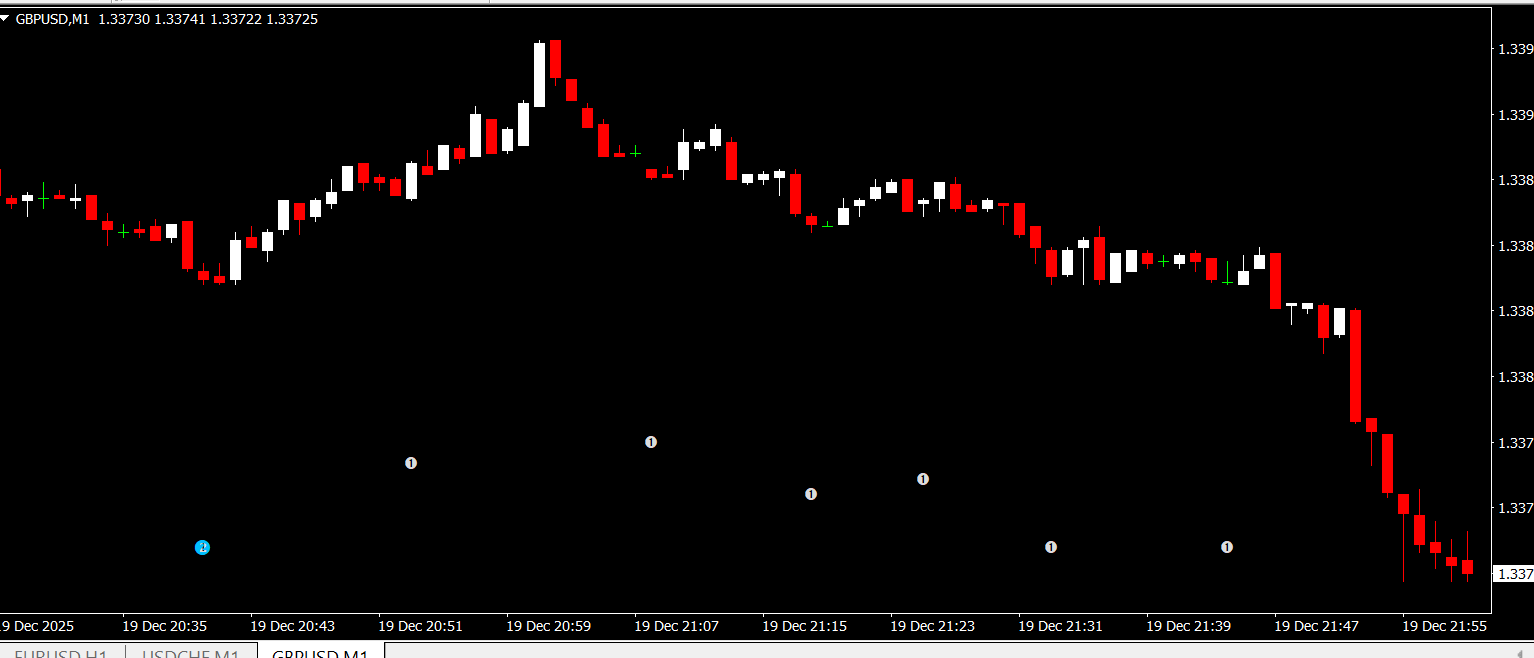 The 4 Level ZZ Semafor Alerts Indicator identifies trend changes by analyzing Price Action and market momentum. When a trend shifts, the indicator updates the dot color and triggers an alert, notifying the trader of a potential trading opportunity.