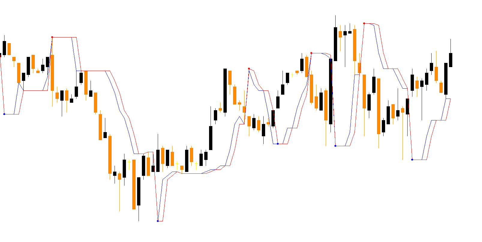 Alongside these zones, the indicator also plots: