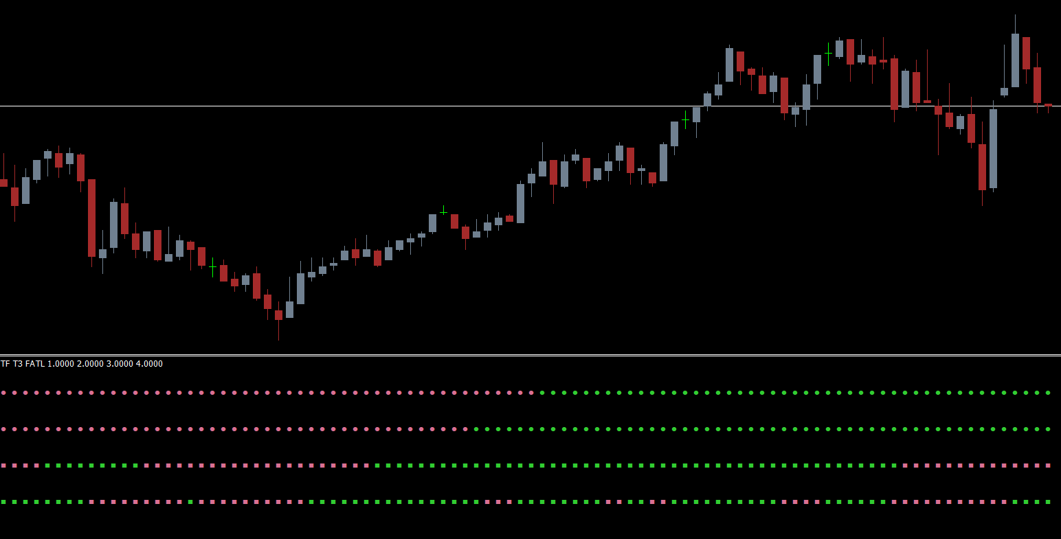 The 4 TF T3 Fatl Alerts Indicator works by analyzing multiple time frames simultaneously and using the T3 moving average to identify potential trend changes. When the indicator detects a significant Trend Reversal or continuation, it generates an alert, allowing traders to react quickly to changing market conditions.