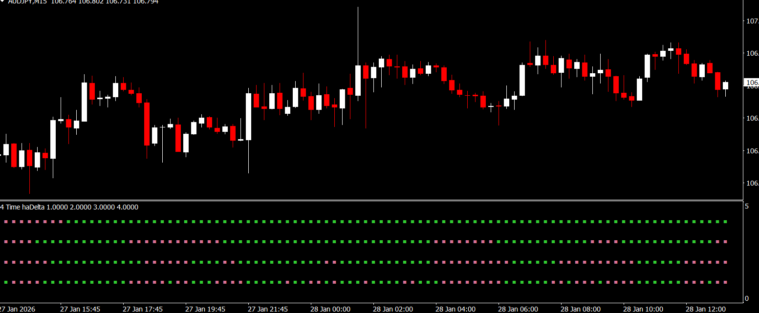 The 4 Time Frame HA Delta NMC Indicator is ideal for traders who want a visual and multi-timeframe approach to trend and momentum analysis. Beginners can rely on clear signals, while experienced traders can use it to confirm trades and optimize entries and exits.