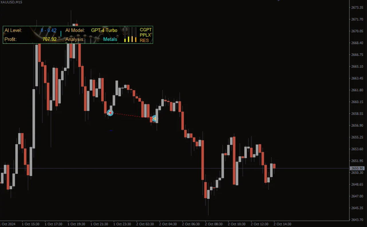 The trading logic of AI NeuroX EA is powered by real-time AI decision processing. Signals are generated when multiple conditions align, including: