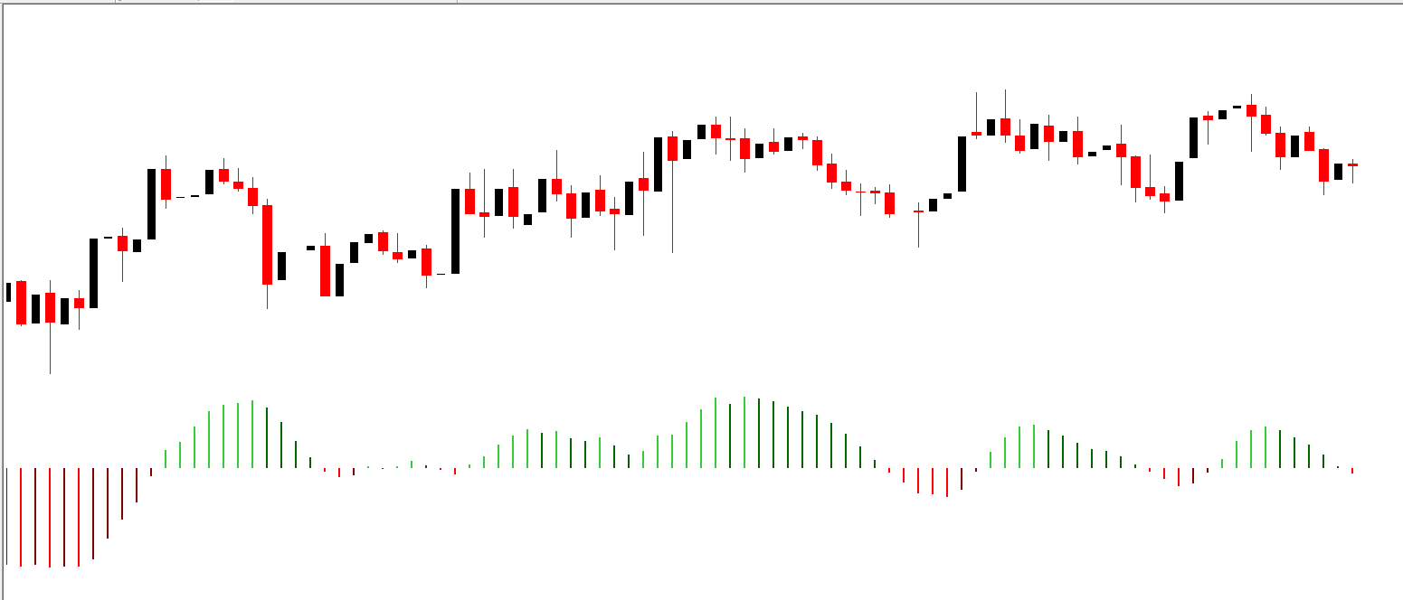 Green bars suggest the market is trending upward, providing a cue for potential long positions.