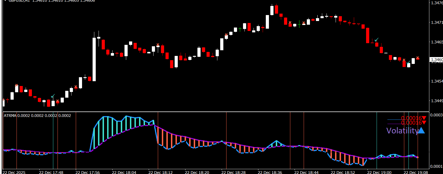 Another benefit is its clarity. The volatility line clearly reflects changes in market activity, while the moving average provides an immediate visual cue of trend direction. This makes it easier to avoid trading during low-volatility conditions or against the dominant trend.