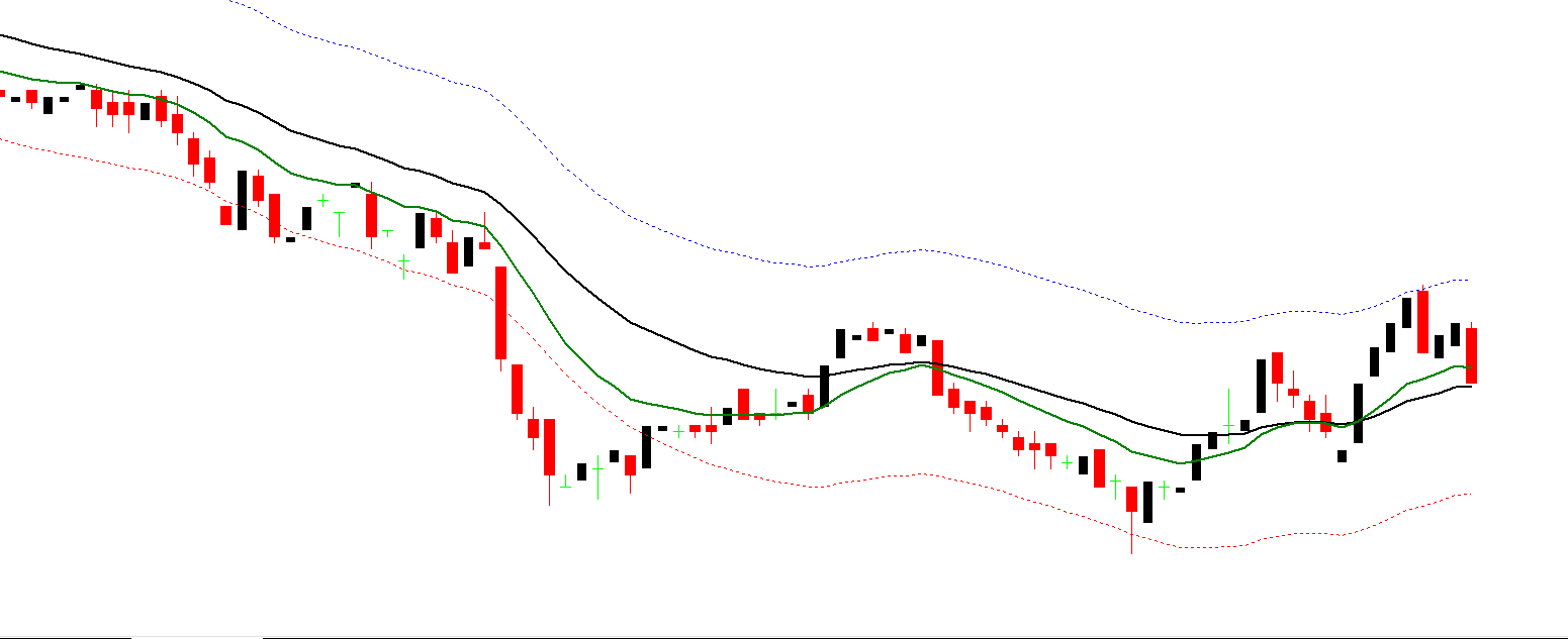 The Auto Envelope Indicator plots two dynamic bands around the market price: