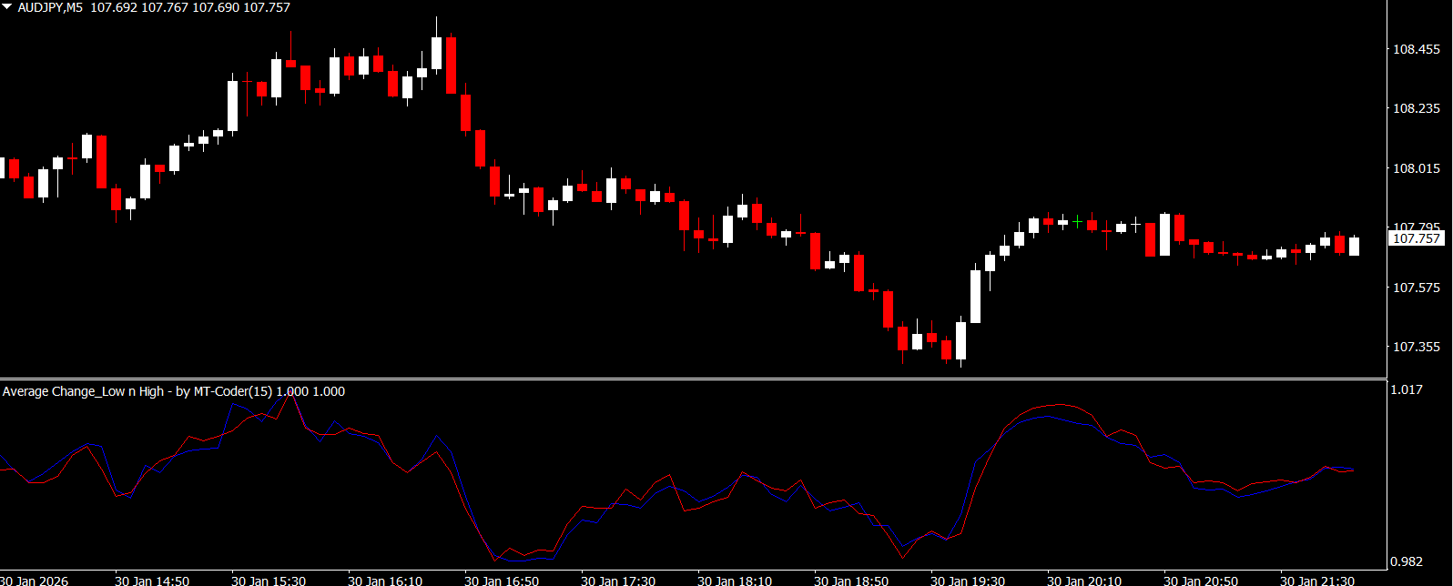 Forex traders commonly use the Average Change High Low Indicator to support entry and exit decisions. Strong average changes can confirm breakout trades, while weakening values may suggest taking profits or tightening stop losses.
