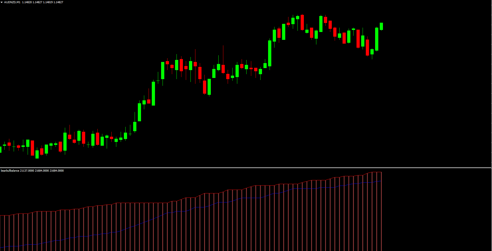 The Bear Bull Balance Indicator for MT4 uses the crossover of bear power and bull power to generate clear bullish and bearish trading signals. By displaying this information as a colored histogram, the indicator helps traders quickly identify market sentiment shifts and momentum strength. It is built around a simple principle: