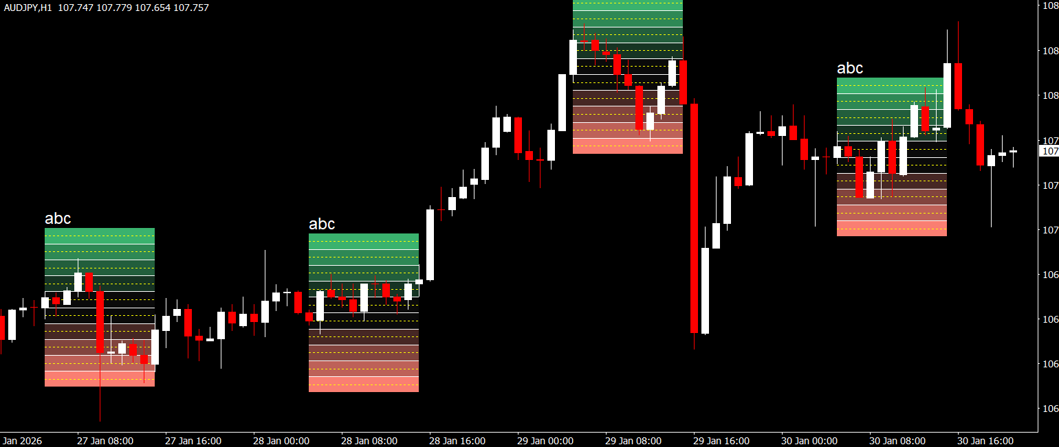 Each box shows the price range within a specific session. When price breaks above or below a session box, it can indicate a potential breakout and the start of a new market move.