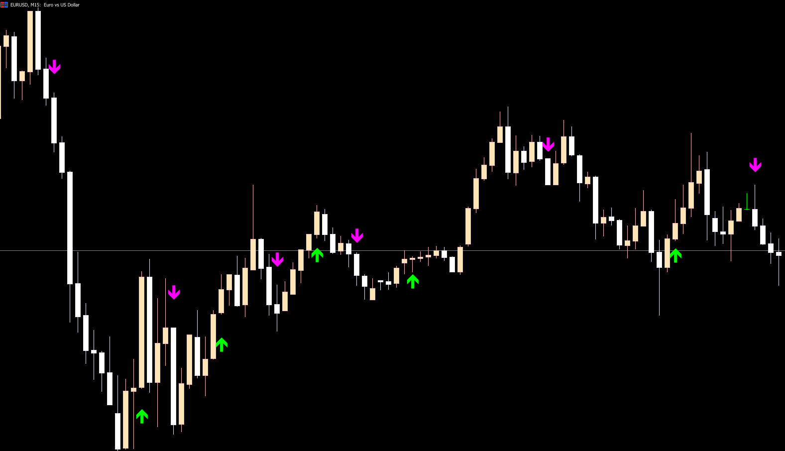 So, in essence, the indicator paints a buy or sell signal arrow when it detects bullish or bearish momentum at a support/resistance zone, respectively. It suggests a buy signal opportunity by displaying a lime-colored arrow, while a sell signal is depicted with a magenta-colored arrow.