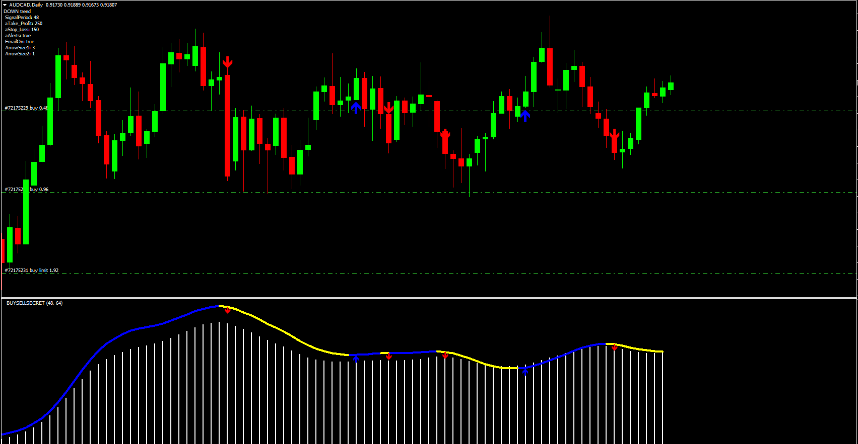 Signals are displayed clearly on the chart, making trade decisions fast and straightforward.