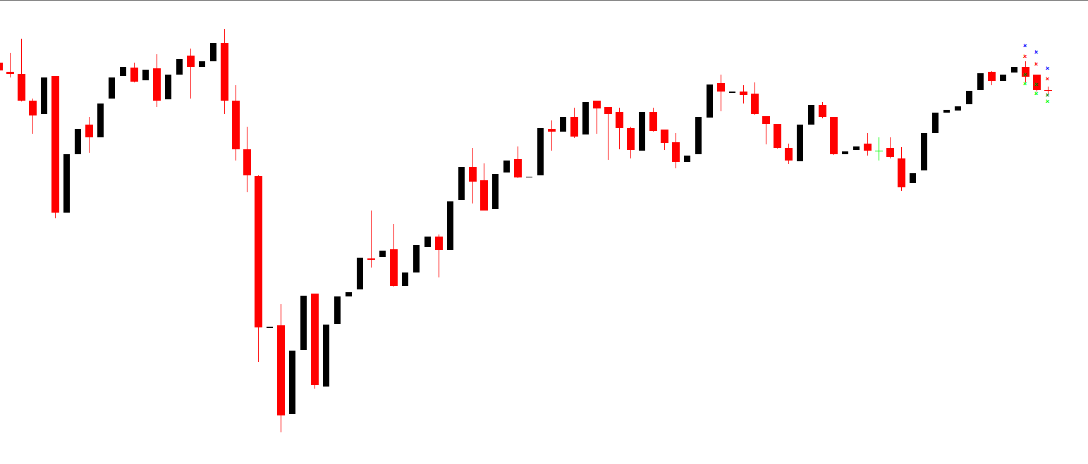 Using data from these indicators, the tool calculates projected values for the future day’s open, high, low, and close prices. These projections are then displayed directly on the chart for easy interpretation.