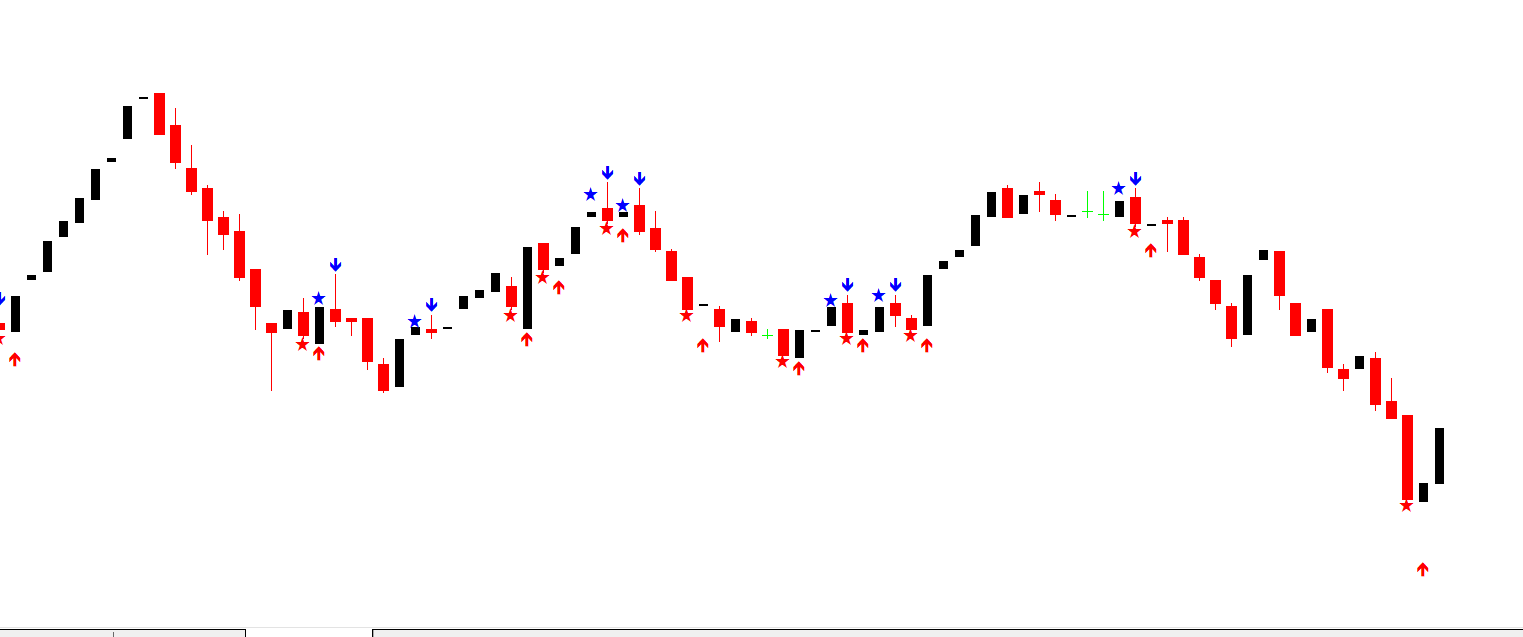The indicator displays a histogram of candle body widths for the last three candles and the current candle, making it easy to read and interpret.