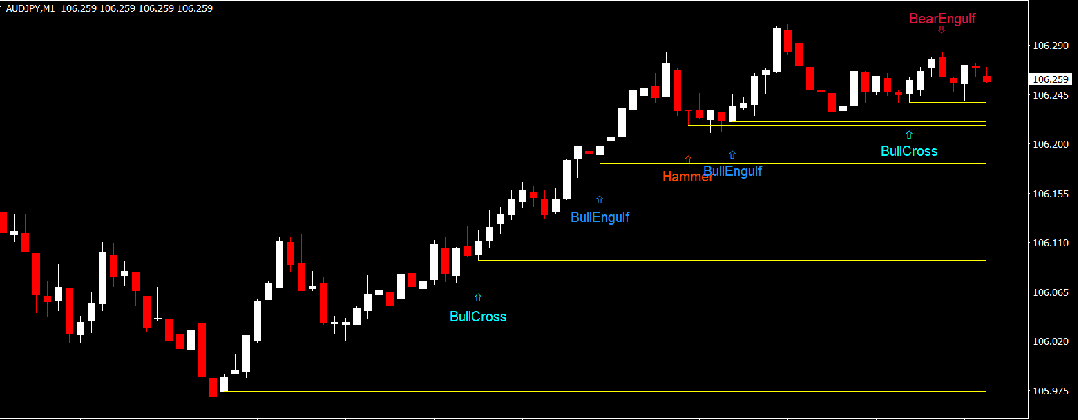 The Candlestick Alerts Indicator MT4 is a pattern-recognition tool that scans the price chart for specific candlestick formations. Popular patterns such as doji, hammer, engulfing, and shooting star are detected automatically. When these patterns appear, the indicator sends alerts to notify the trader immediately.