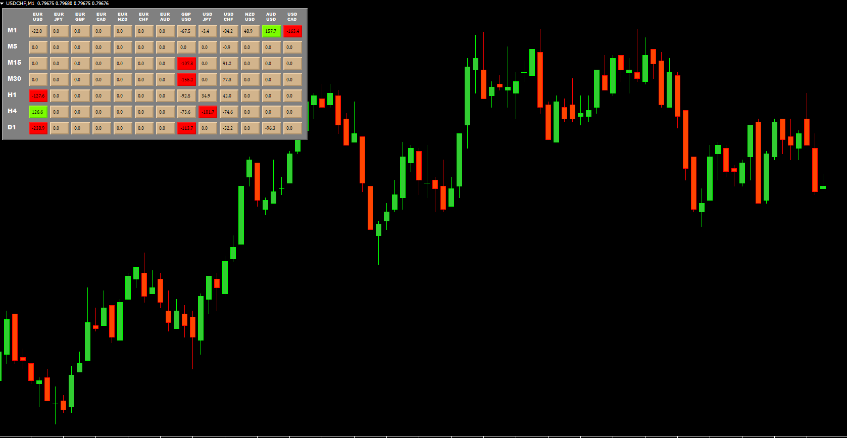 At its core, the indicator calculates and displays CCI values for each selected pair and timeframe. These values are visually represented through colored rectangles on the dashboard: