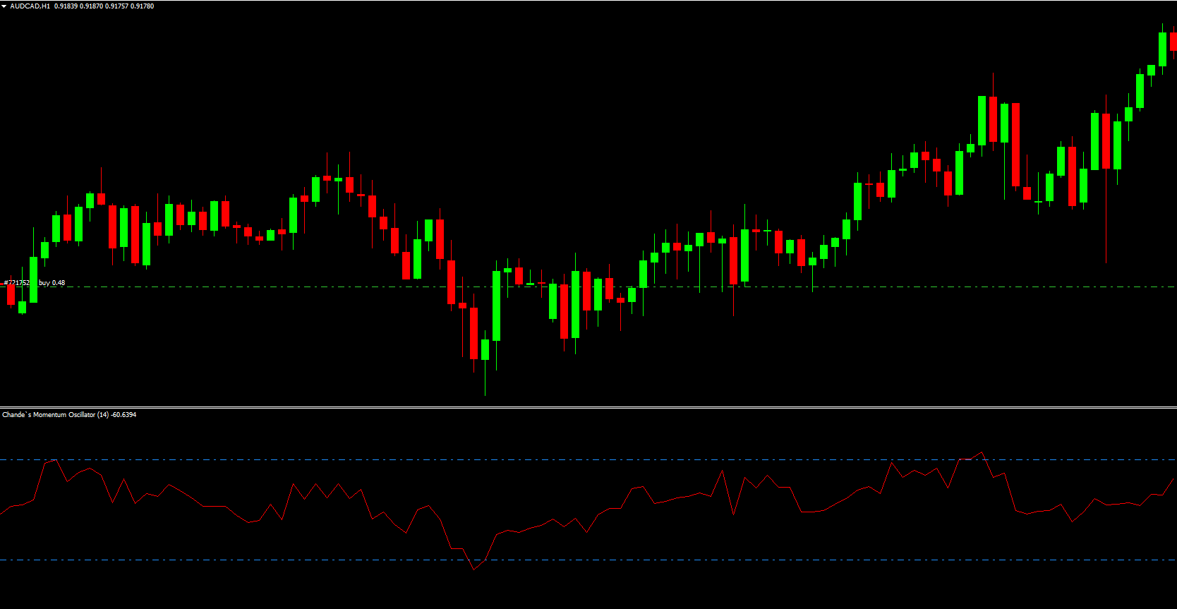 The closer the indicator moves toward +100 or –100, the stronger the momentum. When the CMO hovers around the zero line, the market is likely consolidating, making it wise to stay out.