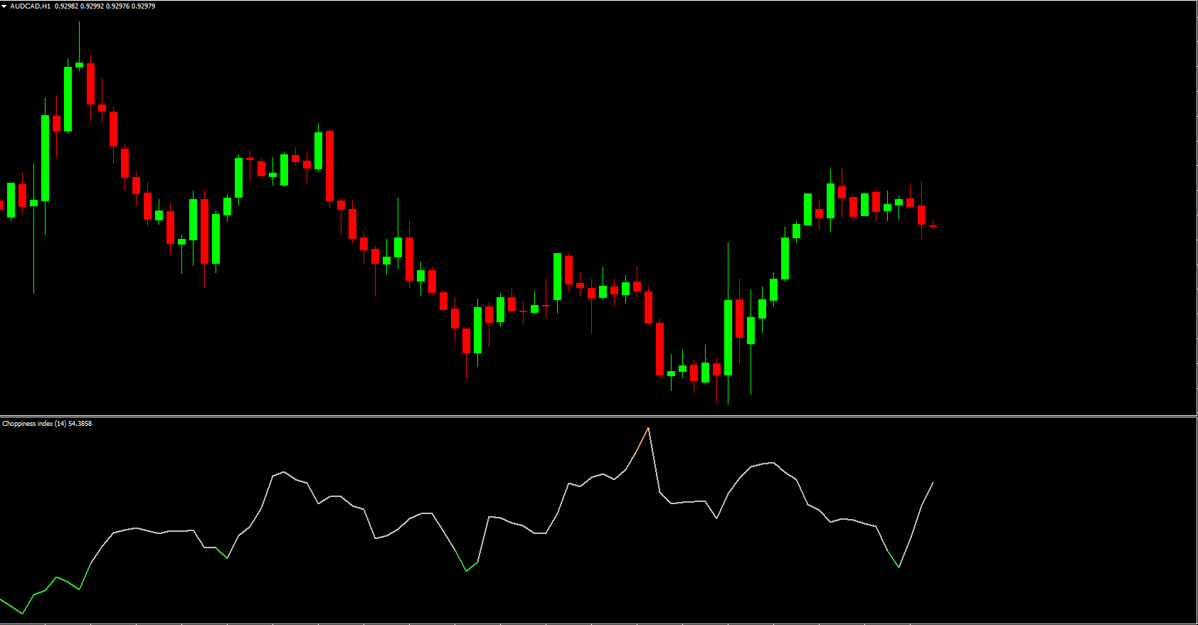 The indicator calculates the choppiness of a currency pair using a combination of price and volume data: