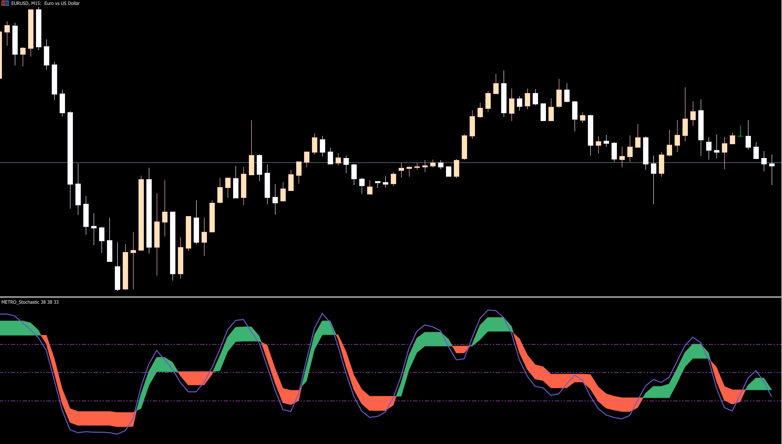 The Color Metro Stochastic Indicator MT5 is a popular and free Forex trading tool that helps traders analyze market momentum and identify potential trading opportunities. Based on the classic Stochastic Oscillator, this indicator enhances readability by using colored signals, making it easier to interpret market conditions and react quickly to price changes.