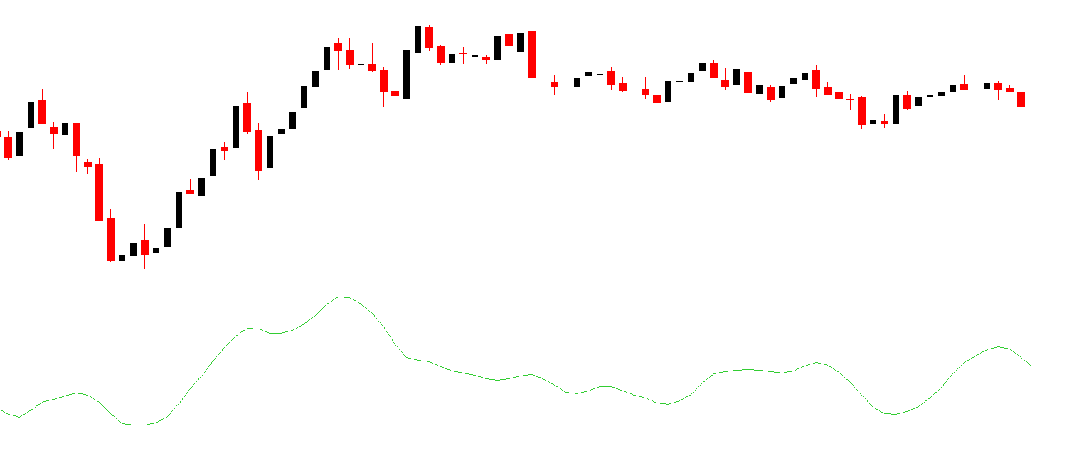 When the RSI crosses below the Super Smoother moving average, a sell signal is generated.