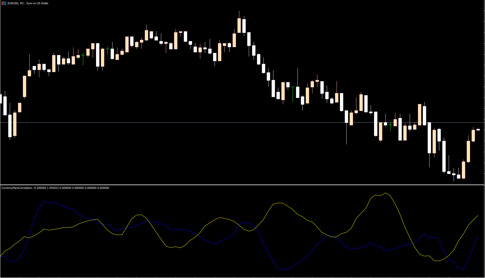 The indicator calculates correlation coefficients based on historical price data. It can be customized for different timeframes, allowing traders to analyze short-term, intraday correlations or longer-term relationships between currency pairs.