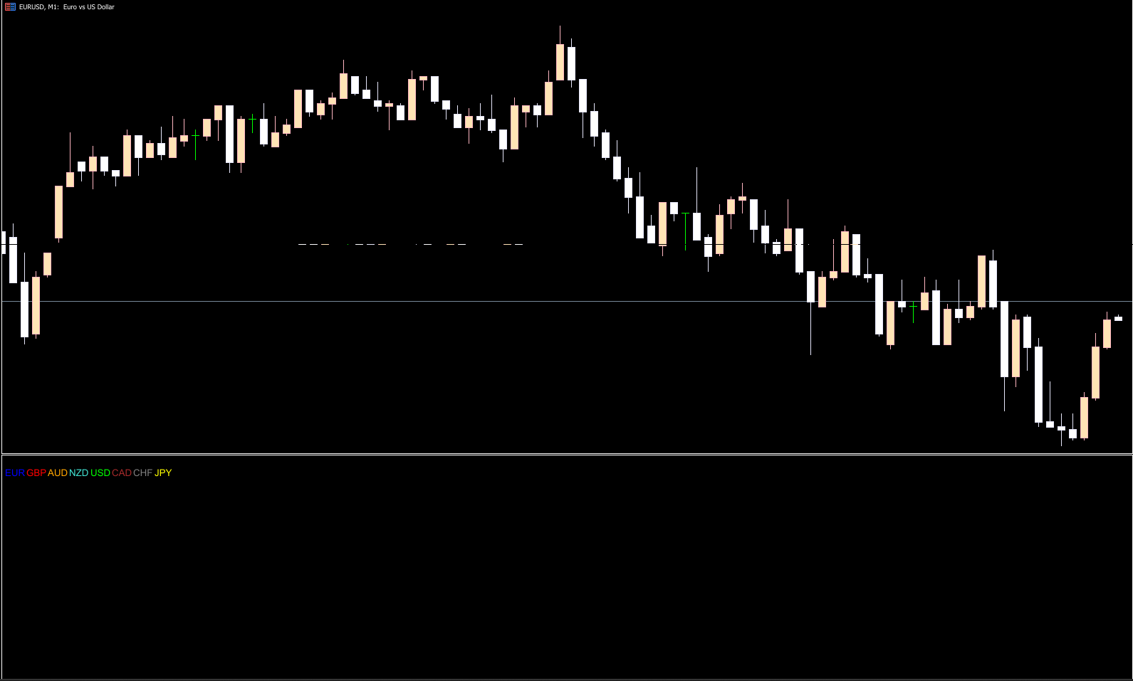 Each currency is plotted as a separate line in a dedicated indicator window. When a currency line is rising, it indicates increasing strength. When it is falling, it indicates weakening momentum. Traders can easily compare multiple currency lines to identify the strongest and weakest currencies in real time.