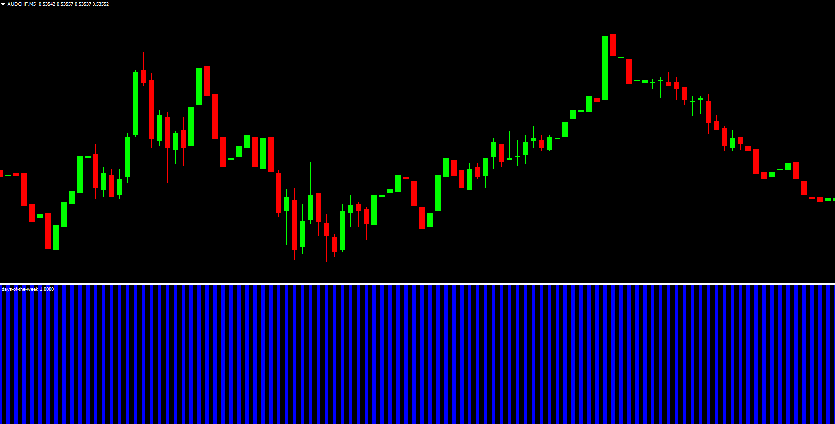 Once installed, the Days of the Week Indicator MT4 appears as a separate window on your chart. The left side of the window shows the current day of the week, while the right side displays the next four days. This layout allows traders to quickly anticipate upcoming trading days and market activity.