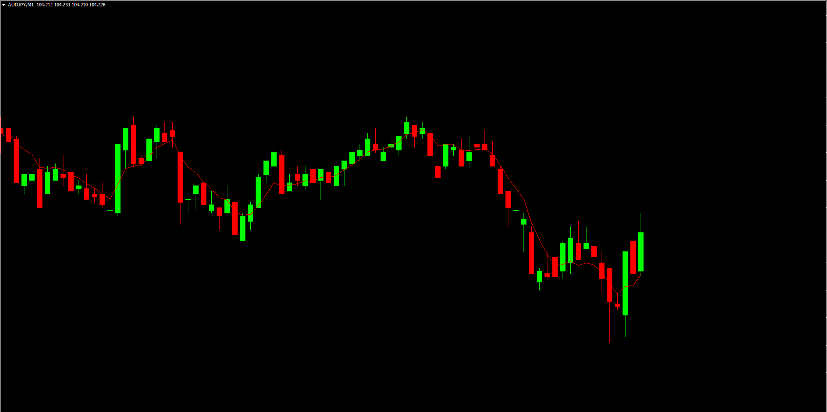 The DEMA MT4 Indicator plots a single red line directly on the price chart. This line represents the smoothed price movement calculated using the double exponential method.