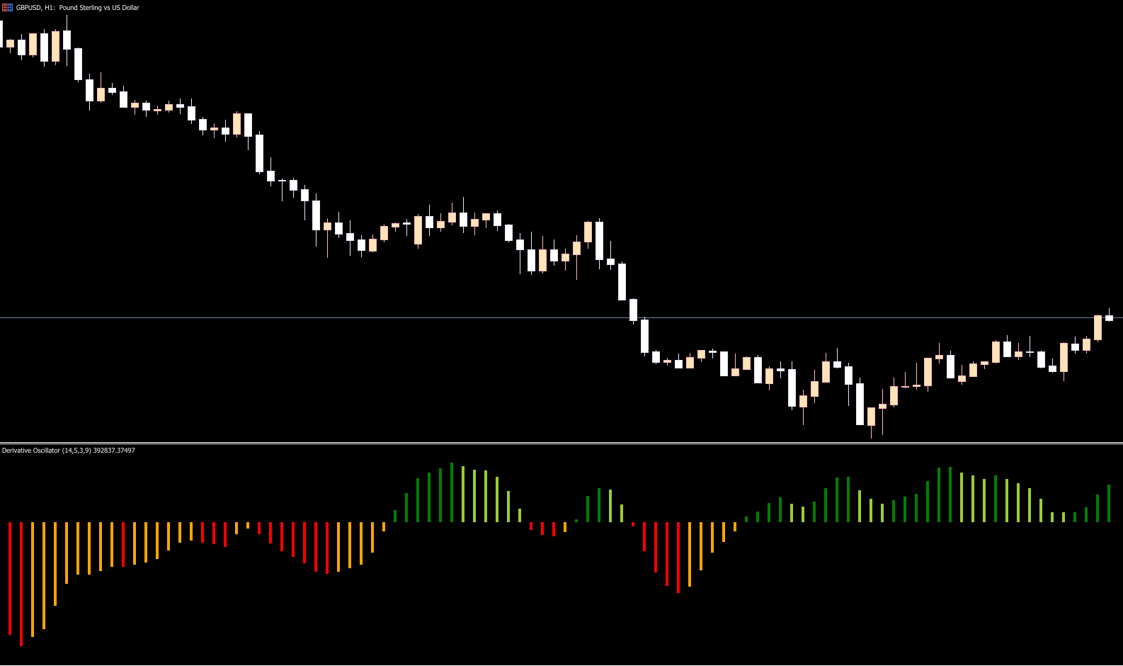 The Derivative Oscillator Indicator MT5 calculates the difference between two moving averages and then plots the result as an oscillator below the main price chart. This allows traders to visually assess changes in momentum.