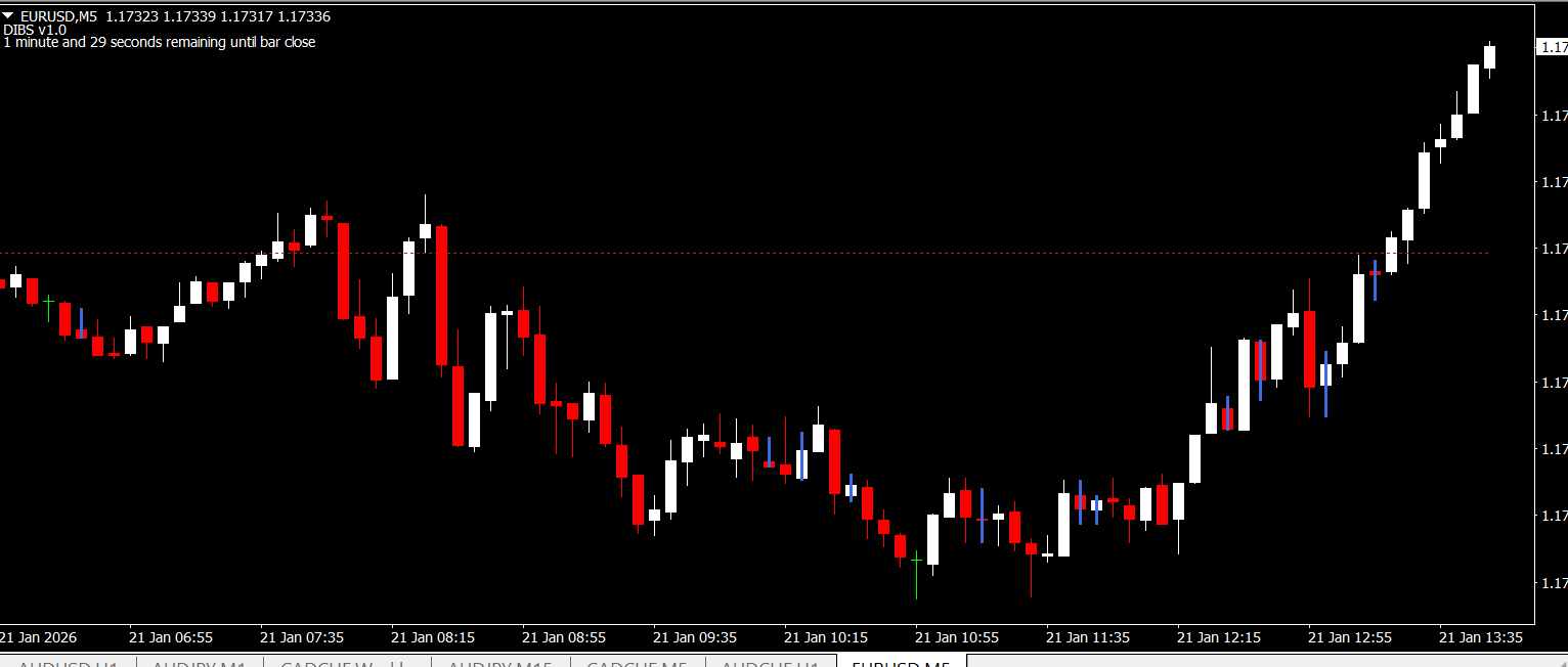 The DIBS Indicator MT4 works in both trending and ranging markets. In trending conditions, a breakout above or below a DIBS level can signal Trend Continuation. In ranging markets, price bounces between DIBS levels can be used for short-term trades.