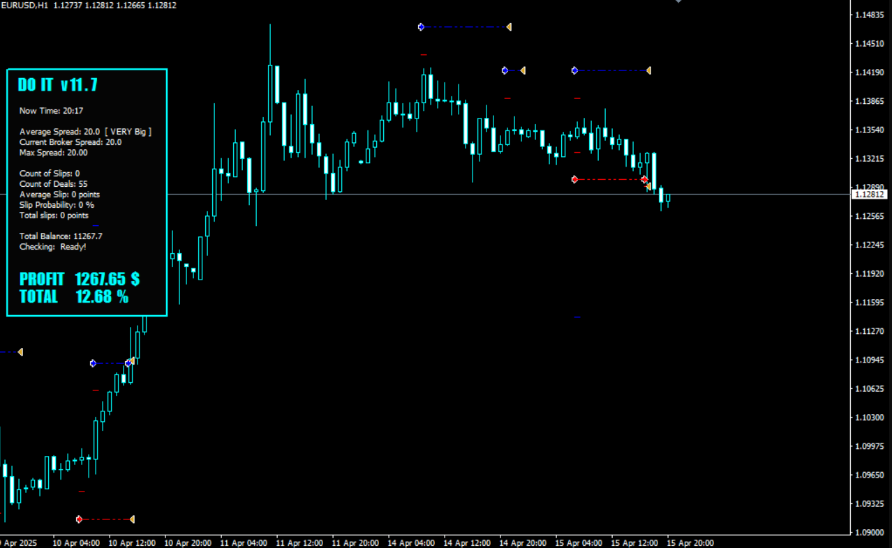 In the fast-paced Forex and CFD markets, traders require tools that combine speed, accuracy, and consistency. Do IT v11.7 EA for MT4 is a modern automated trading system designed to meet these needs. Unlike many bots that rely on grid or martingale strategies, this EA focuses on high-probability breakout entries, momentum confirmation, and fast trade cycles, making it ideal for traders who value both safety and performance.