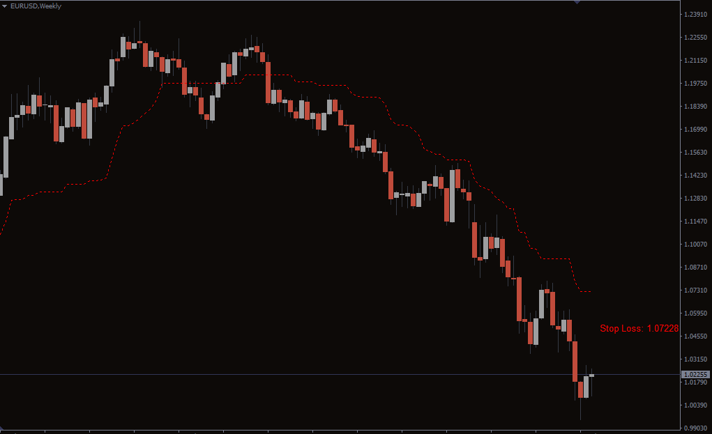 The stop loss should always be placed at the value indicated by the Doda Donchian line.