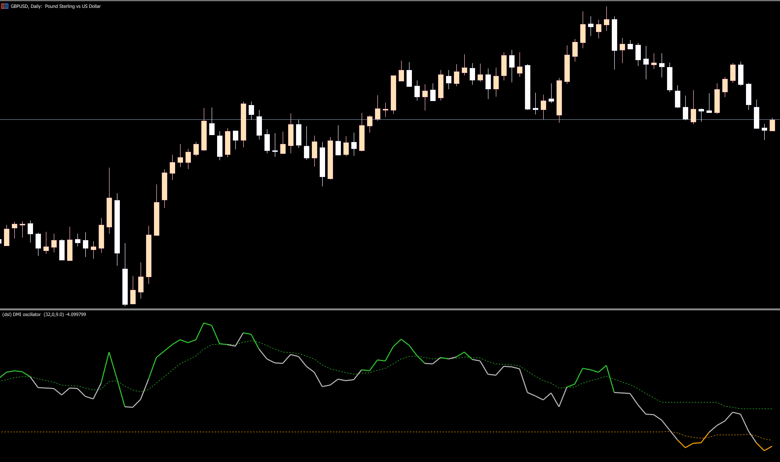 The DSL DMI Oscillator calculates the difference between the highs and lows of the current period compared to the previous period. It then plots this difference as an oscillator on the chart. When the oscillator is above the zero line, it indicates a bullish trend, while values below zero signal a bearish trend. This clear visual representation allows traders to determine the market’s momentum and adjust their trading strategies accordingly.