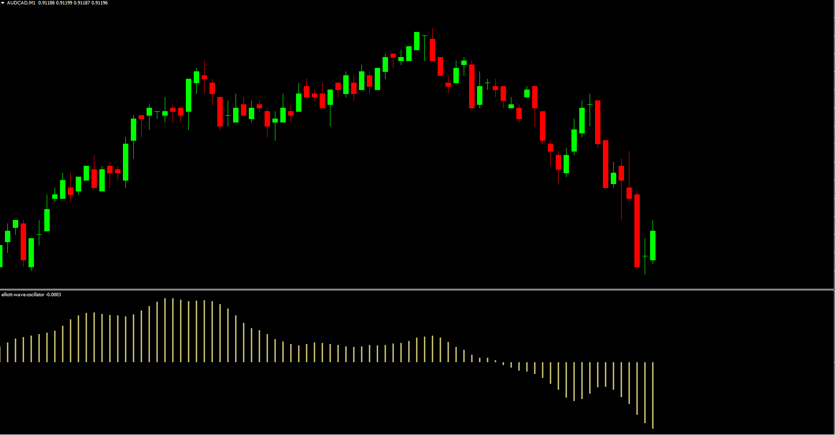 The Elliott Wave Oscillator is a momentum-based indicator that measures the difference between short-term and long-term moving averages. This difference highlights the strength and position of waves within a trend. The indicator typically appears as a histogram oscillating above and below a zero line, making it easy to identify momentum shifts.