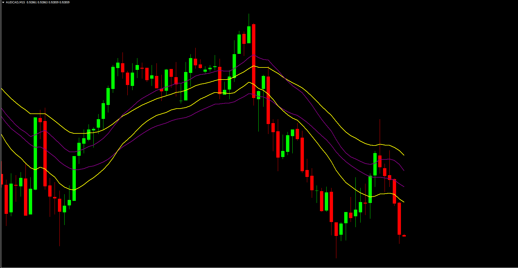 The indicator plots the fast EMAs in purple and the slow EMAs in yellow on the price chart. By default, the fast EMA period is 21, and the slow EMA period is 34. Traders can adjust these periods to suit their trading style, with higher periods generally producing longer-term trend signals.