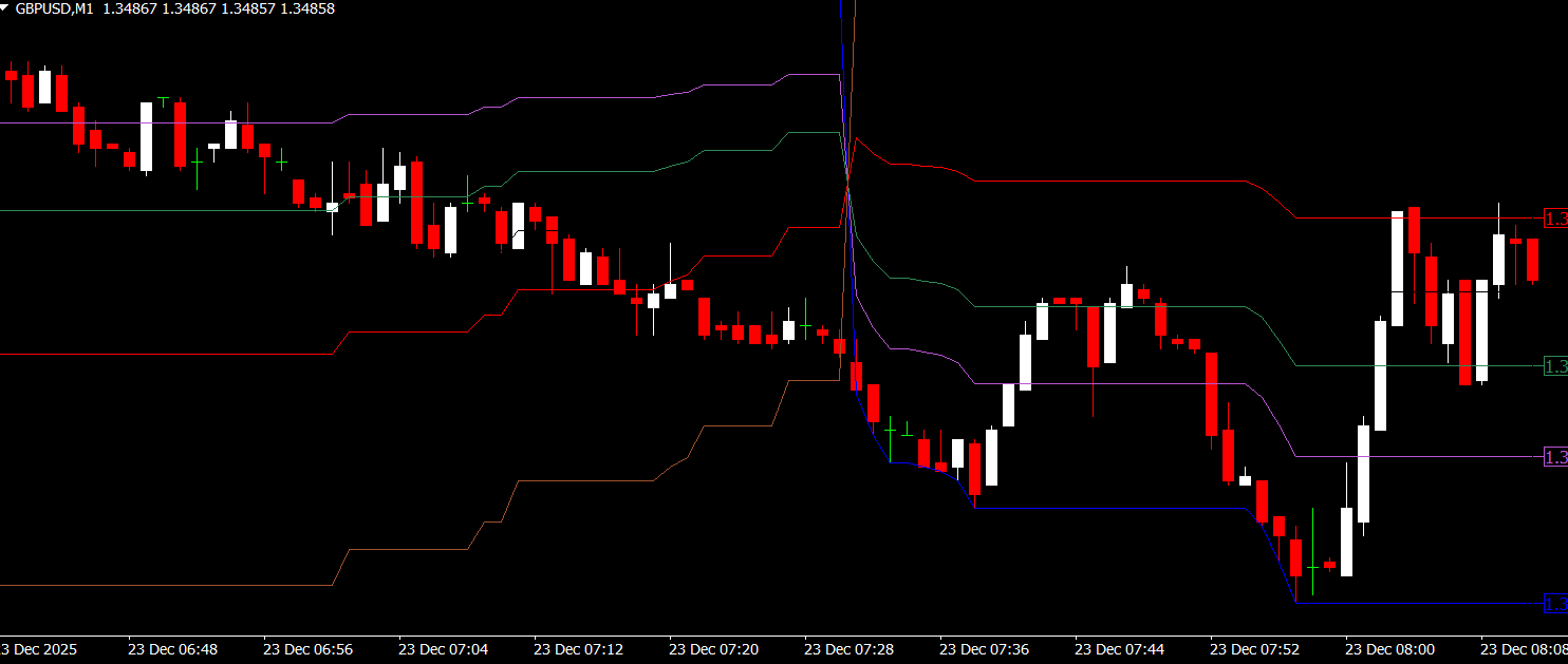 The indicator’s Fibonacci channels act as dynamic support and resistance levels, helping traders place stop losses, take profits, and manage risk effectively.