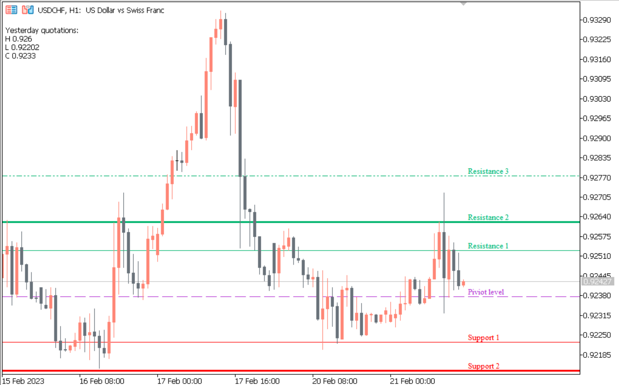 This MT5 indicator works seamlessly across all intraday charts and can be used on lower timeframes, while the levels are calculated on the daily chart. Pivot points are recalculated daily, giving traders fresh support and resistance levels at the start of each trading day.