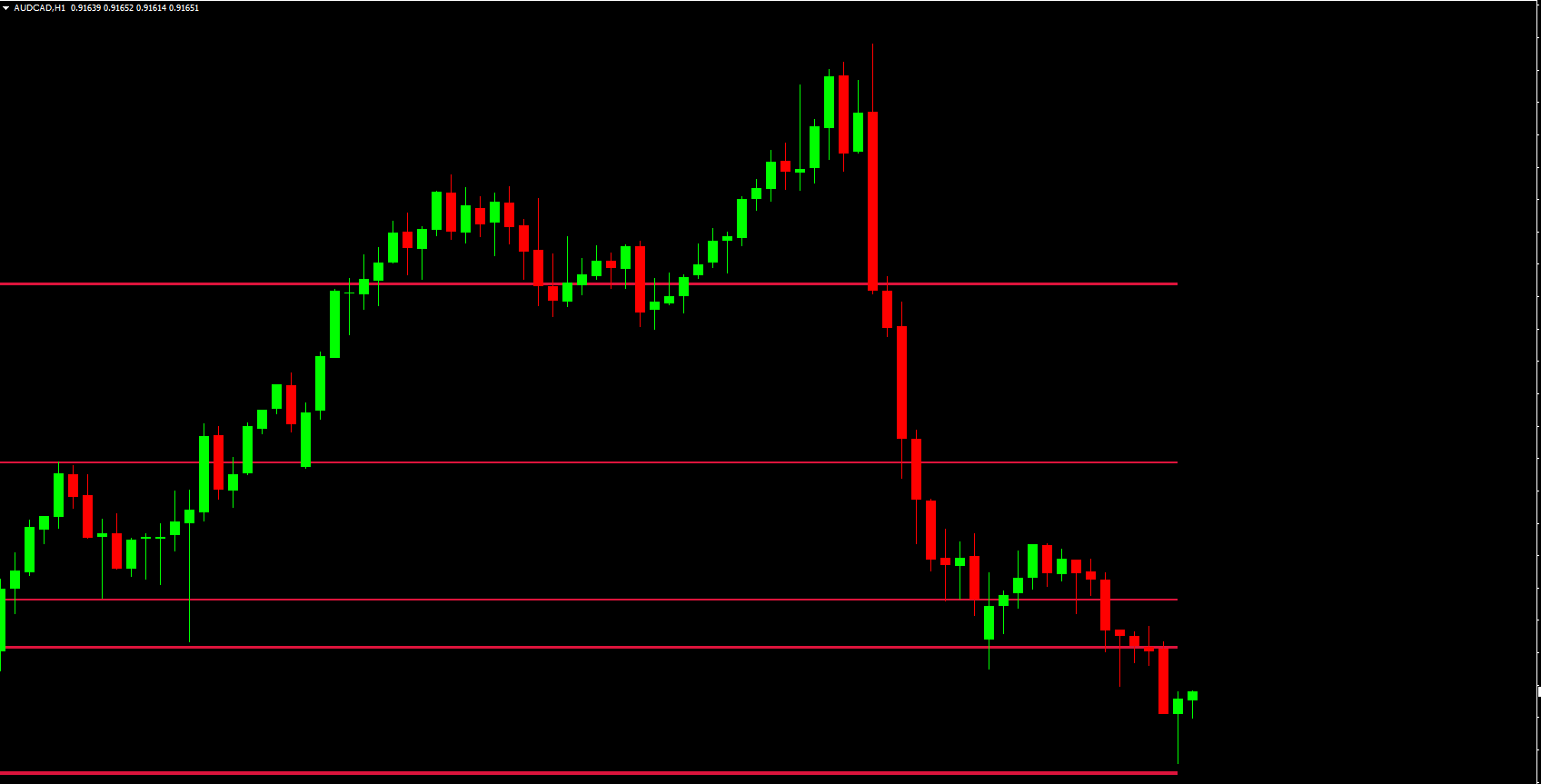 The indicator plots red support and resistance lines on the chart: