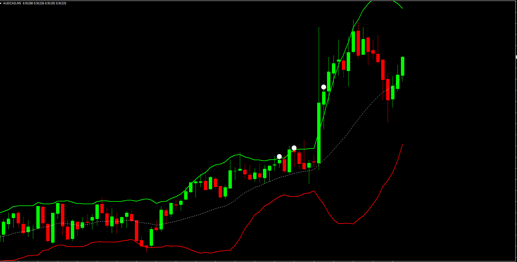 These bands expand and contract based on market volatility, just like traditional Bollinger Bands. The indicator monitors price interaction with these bands to identify potential trend reversals, continuations, and breakout zones.