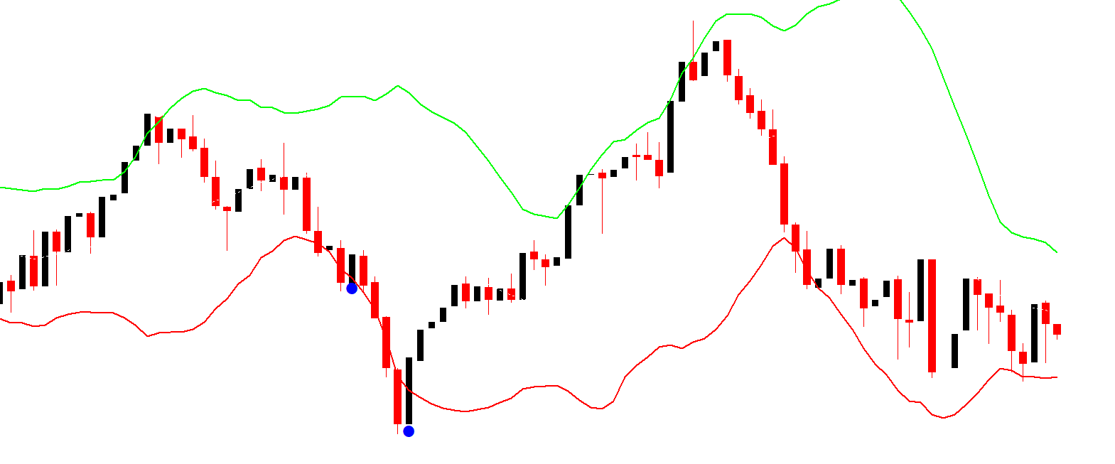 The Fiji BB Alert Indicator works by monitoring the interaction between price and Bollinger Bands: