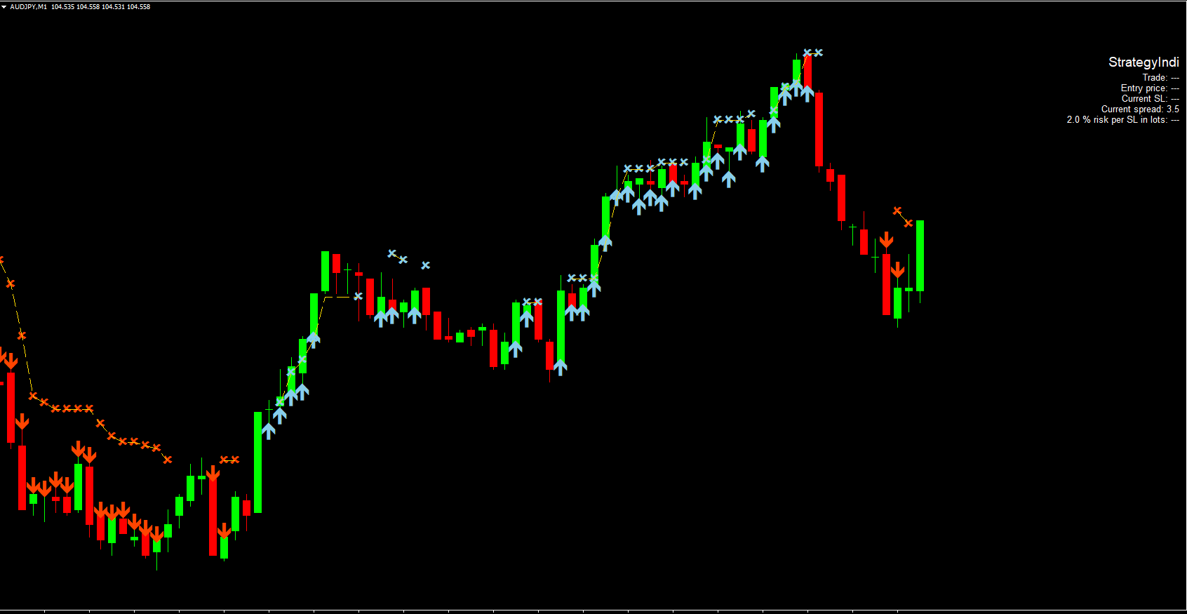 The Forex Strategy Indicator works by continuously analyzing Price Action and trend behavior in the market. It detects patterns, momentum shifts, and trend direction to generate trading signals that align with prevailing market conditions.