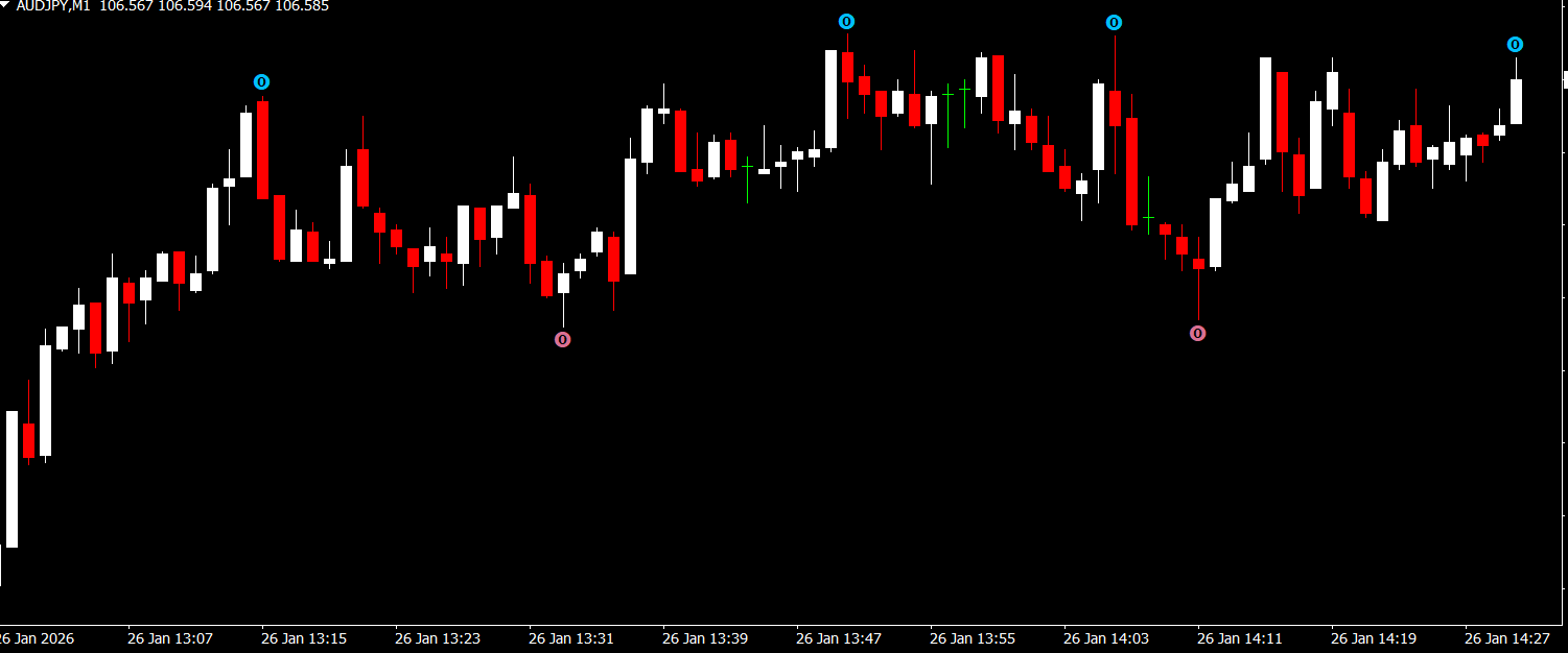 The indicator scans the chart for fractal patterns and highlights potential turning points with arrows or alerts. Users can: