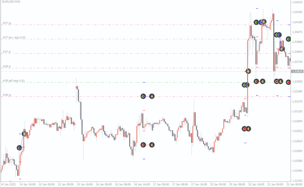 The strategy behind Freedom EA is based on a hybrid structure of trend-following and breakout logic. The robot analyzes key market levels such as support and resistance zones, then places pending orders when strong price momentum aligns with trend direction.