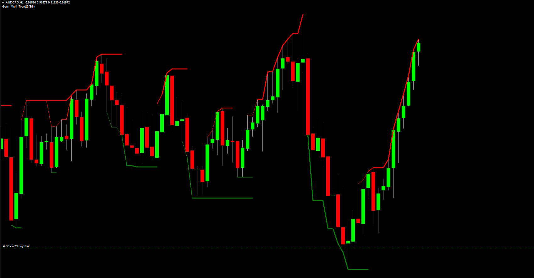 The Gann Multi Trend Indicator performs best in trending market conditions and should be used as part of a complete trading strategy.