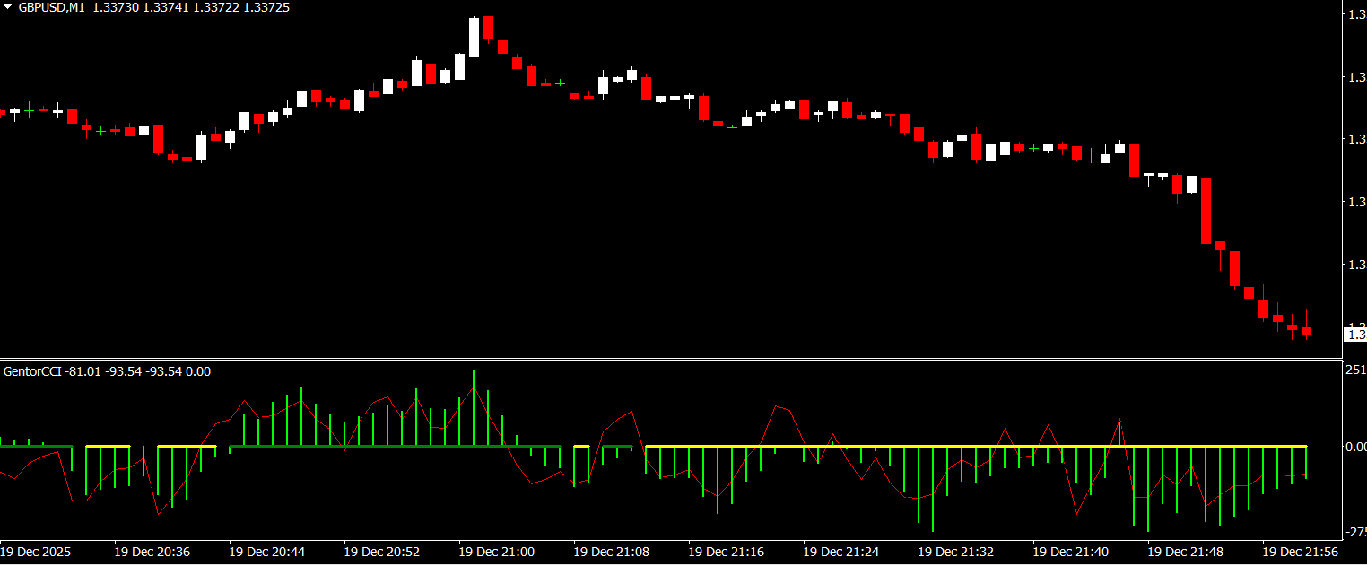 To use the Gentor CCIM Indicator, traders simply attach it to any MT4 chart. Once applied, the indicator automatically begins analyzing price data and displays the histogram below the chart. Traders can adjust visual settings such as colors and alert preferences to match their trading style.