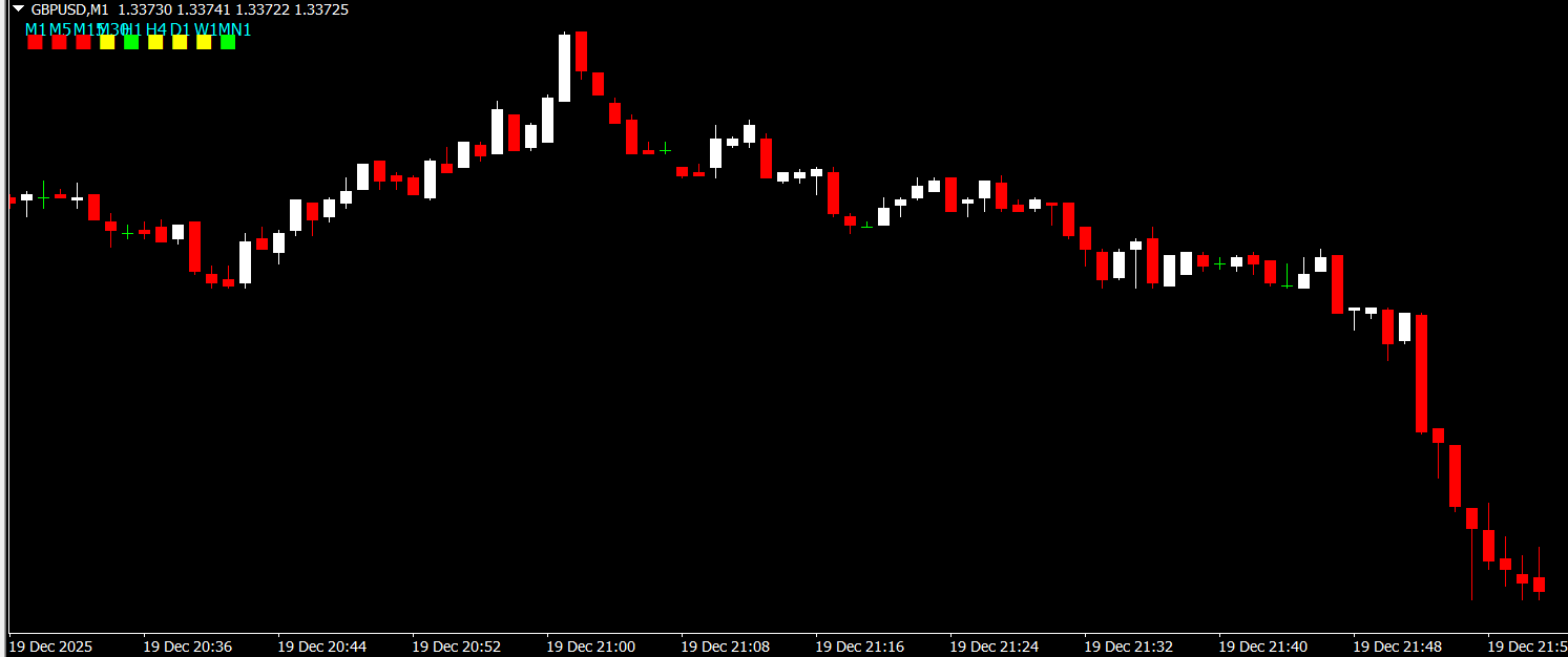 In addition to the trend bar, the indicator includes a histogram that reflects momentum strength. When momentum increases, traders can expect stronger price movement in the direction of the trend. This dual confirmation helps reduce false signals and improves trade accuracy.