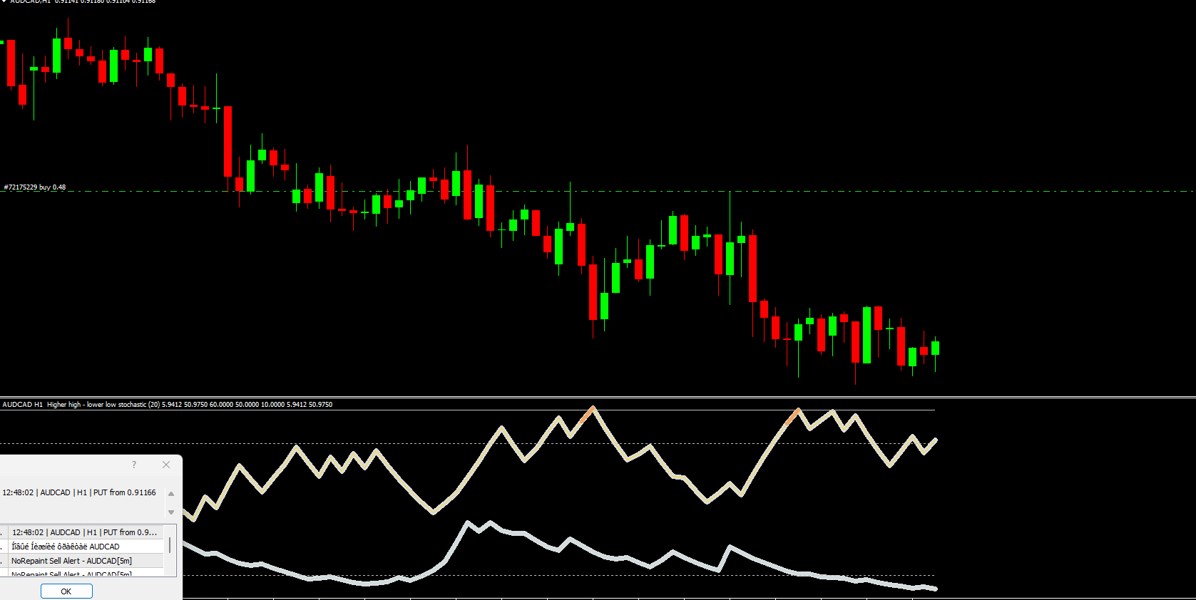 The Higher High Lower Low Stochastic Indicator is a free and popular Forex Indicator for the MetaTrader 4 (MT4) platform. It is designed to help traders identify potential buying and selling points in the market by analyzing price momentum and reversals.