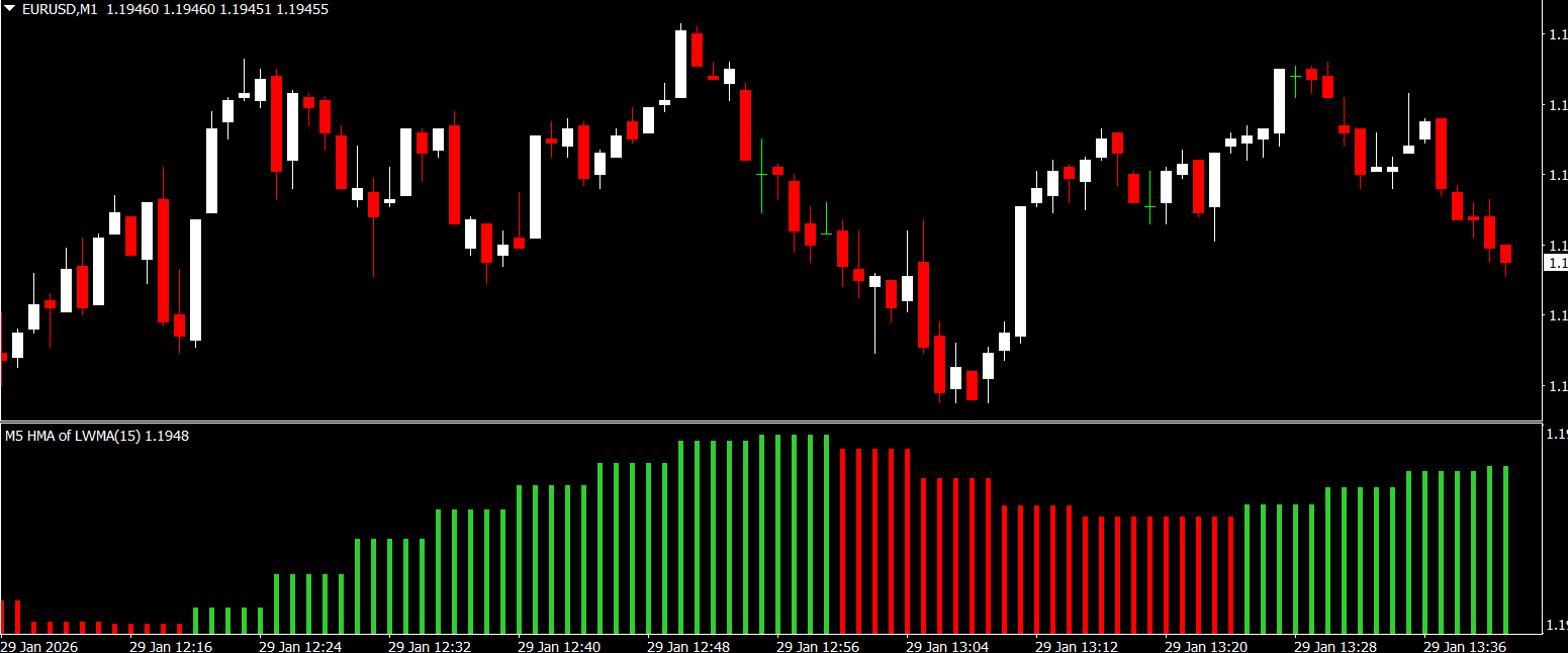 The HMA provides smoother and faster trend signals, helping traders stay aligned with the dominant market direction.