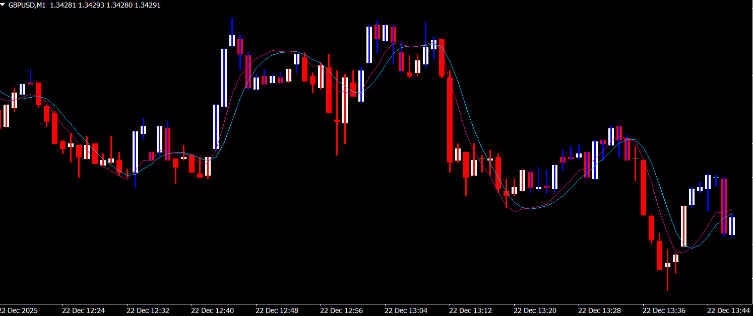 The Hull Trend MT4 Indicator plots two Hull Moving Averages directly on the price chart: