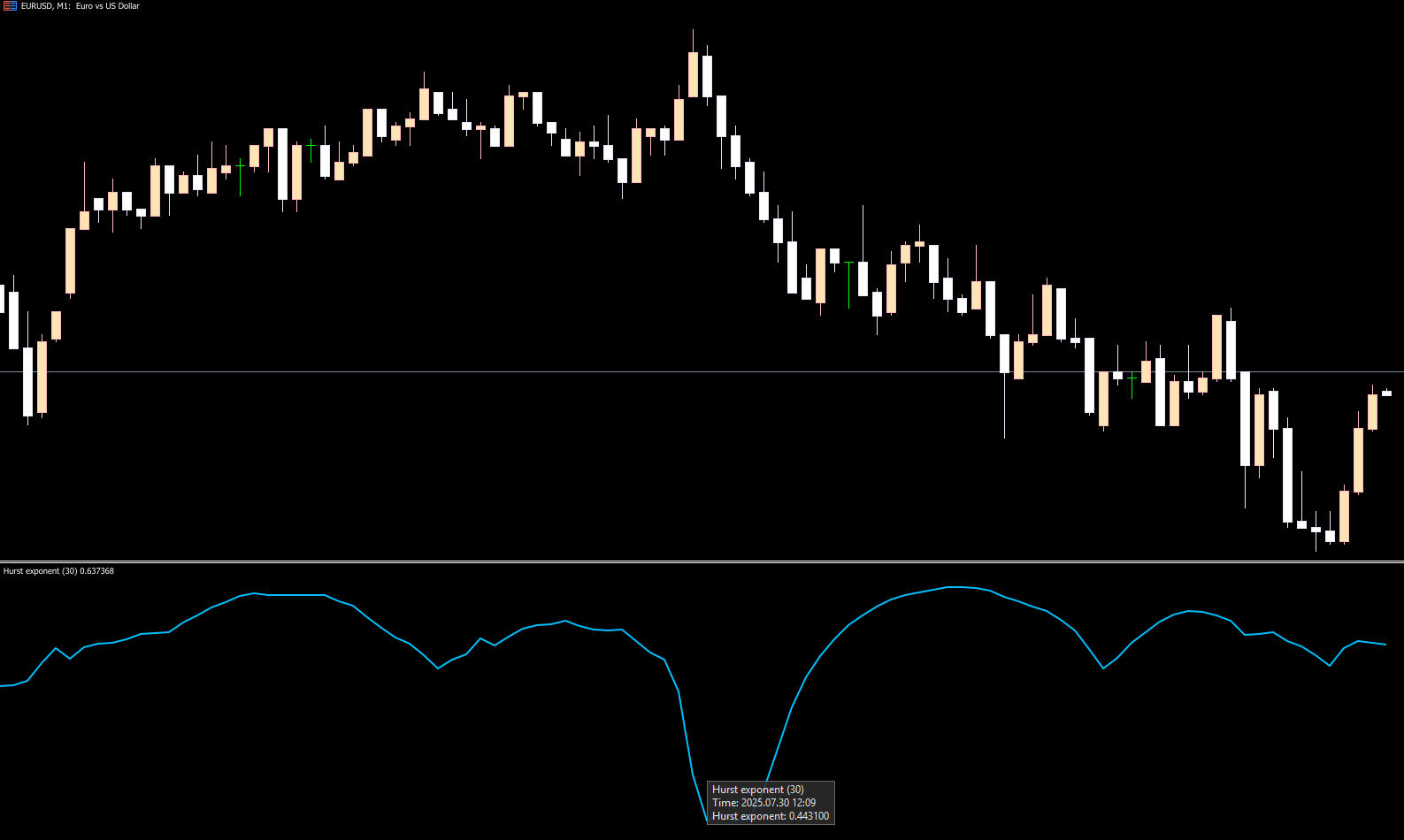 The Hurst Exponent is a statistical measure used to evaluate how persistent or random a time series is. In Forex trading, it helps determine whether price movements tend to continue in the same direction or frequently reverse.